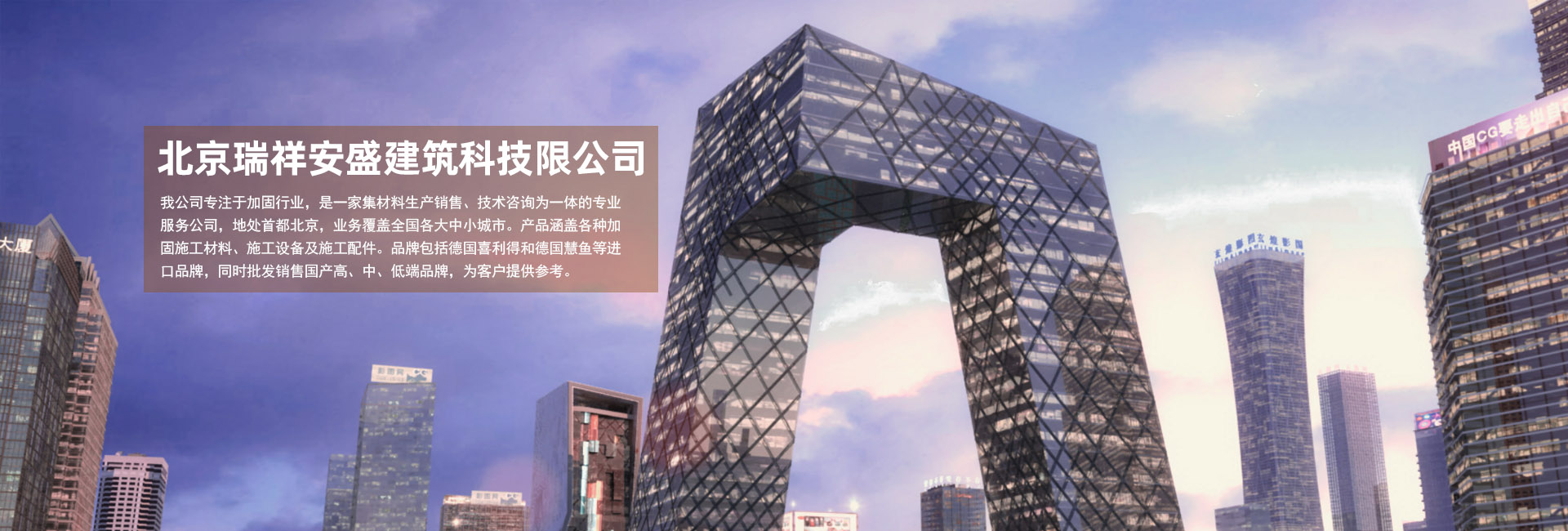 北京瑞祥安盛有限公司成立于2008年,公司總部位于北京,是一家從事特種建材開發(fā)及銷售的專業(yè)性公司;產(chǎn)品涵蓋各種加固施工材料、施工設(shè)備及施工配件。